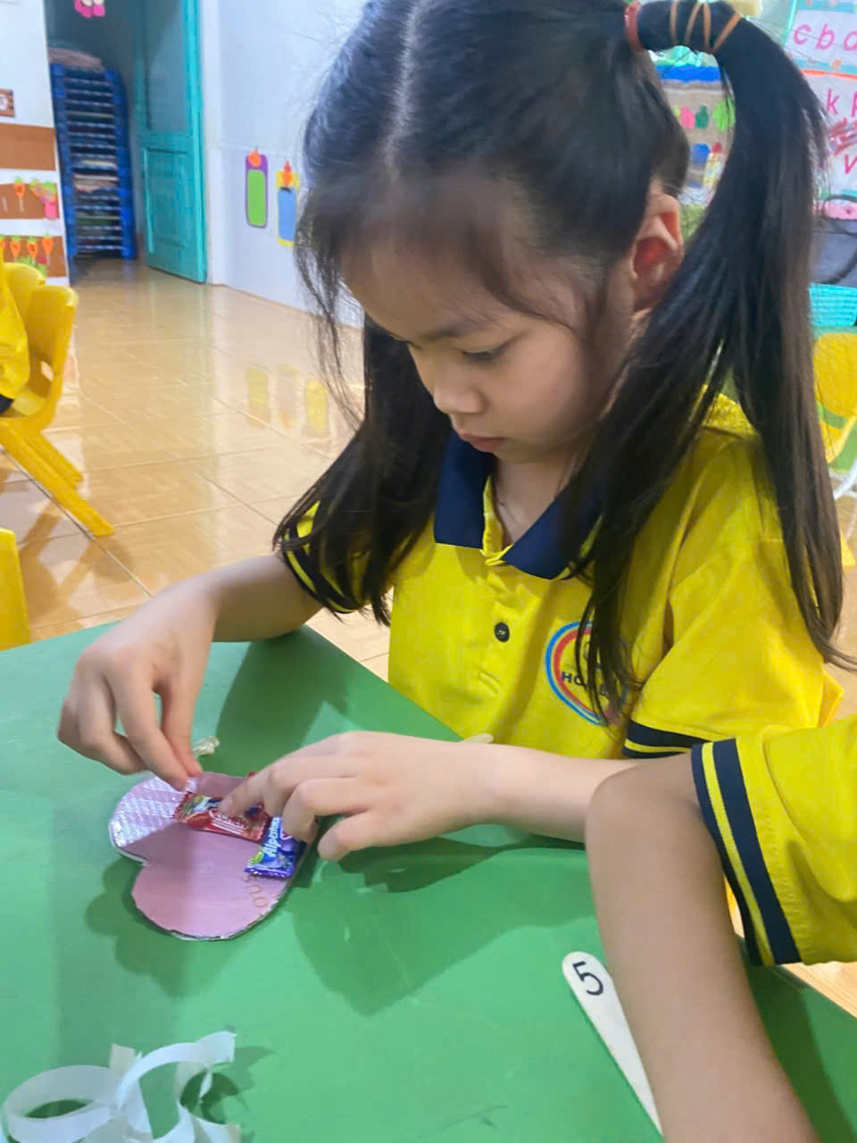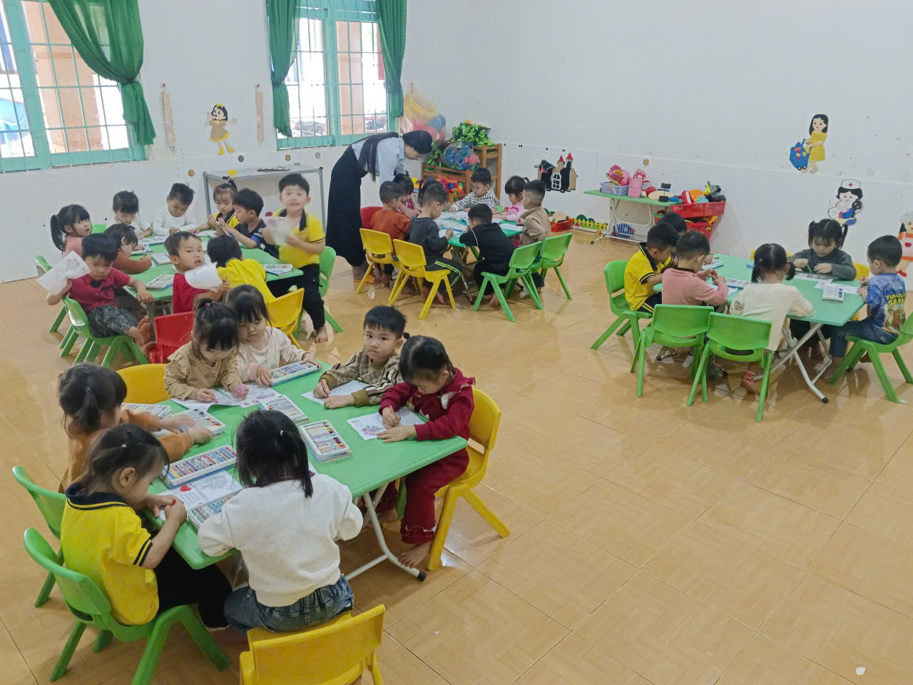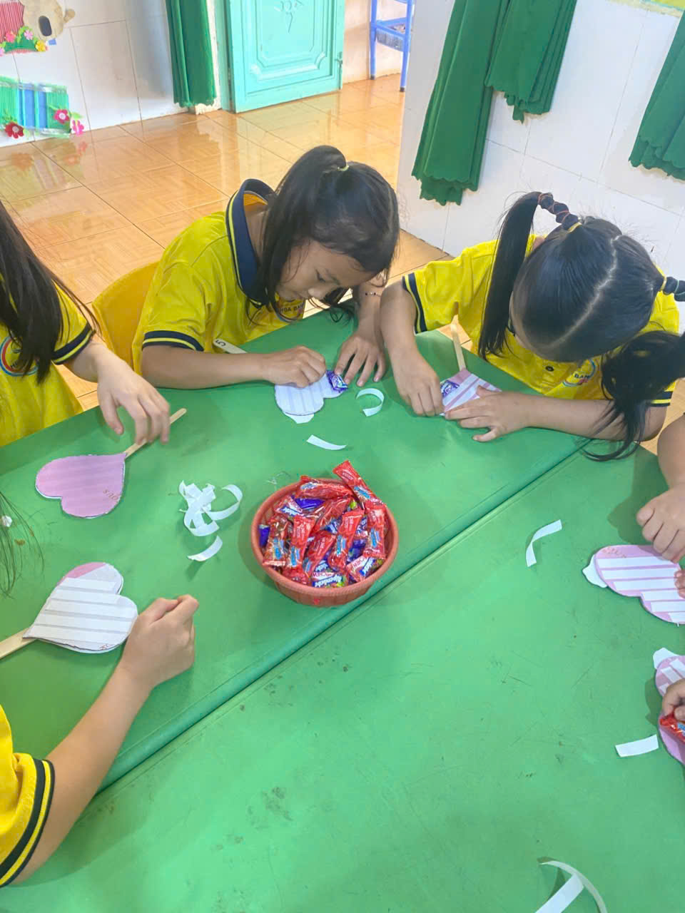 ác bé tại Trường Mầm non Hoa Ban đã tham gia hoạt động làm thiệp tặng mẹ và bà đầy ý nghĩa.