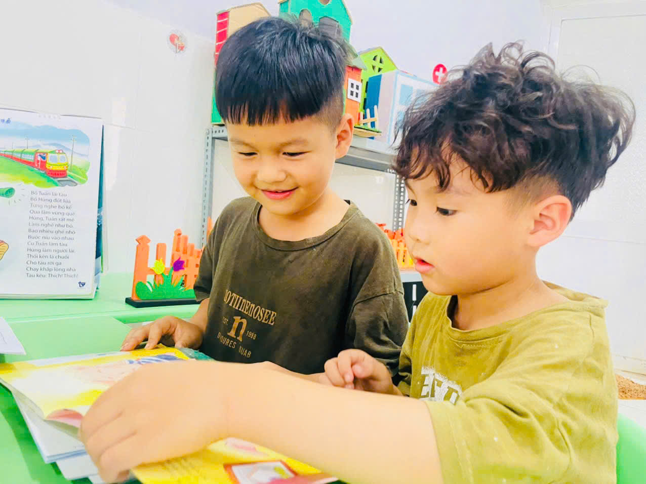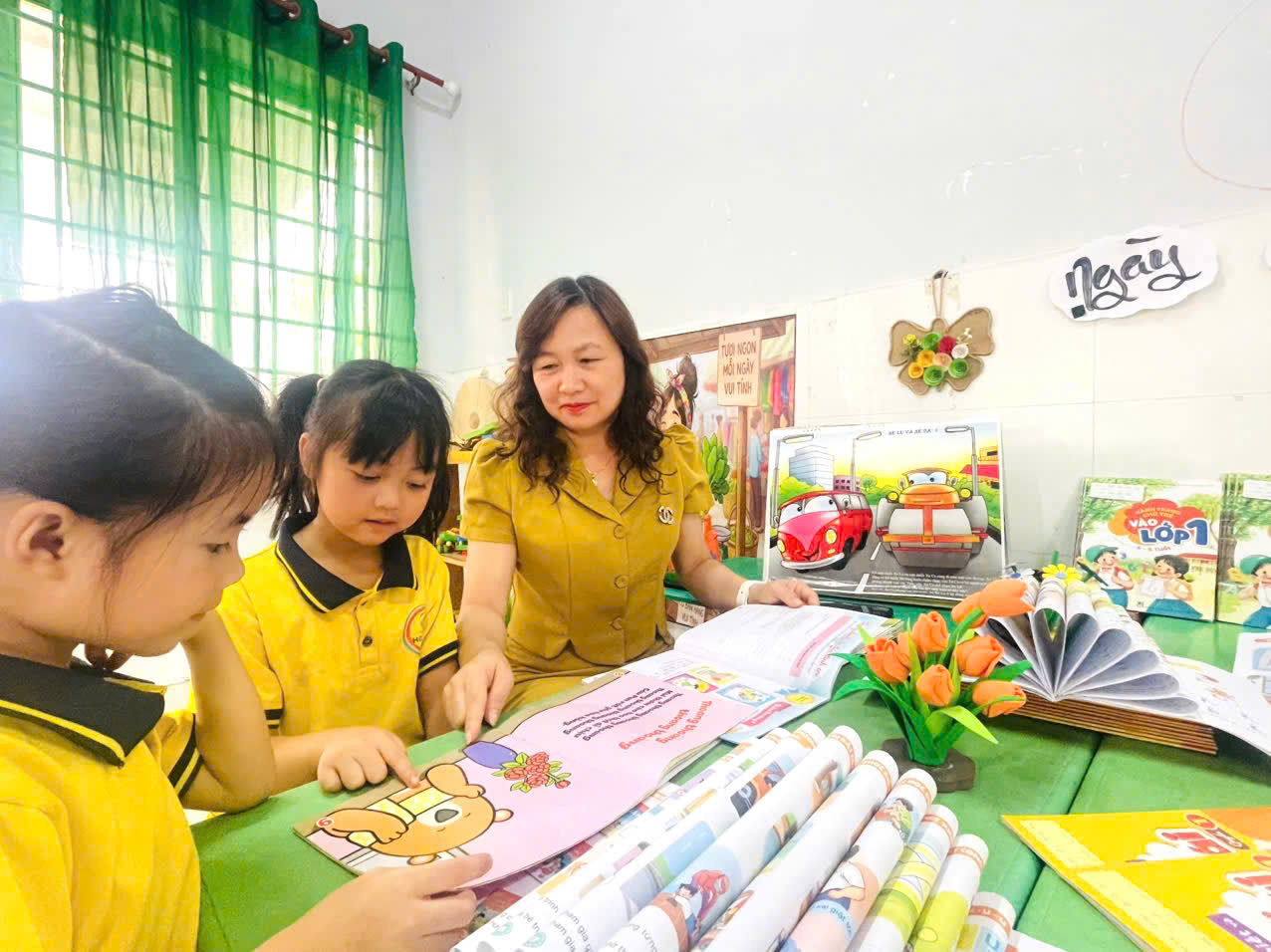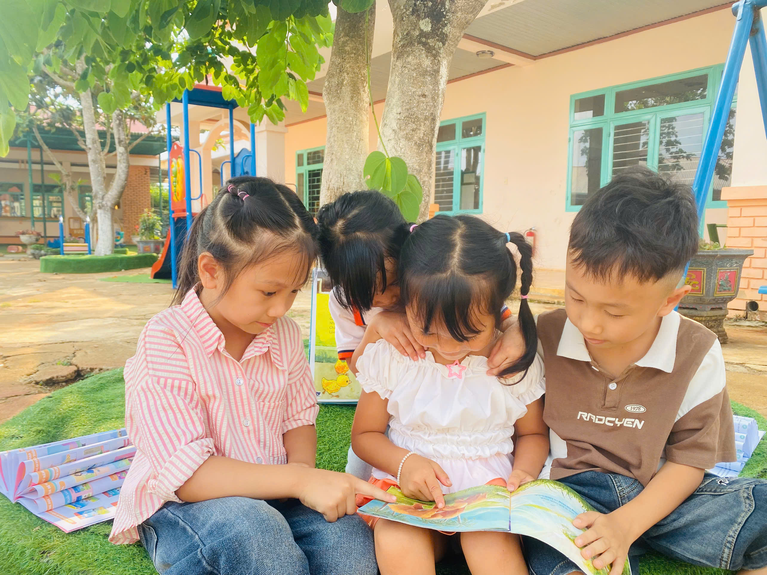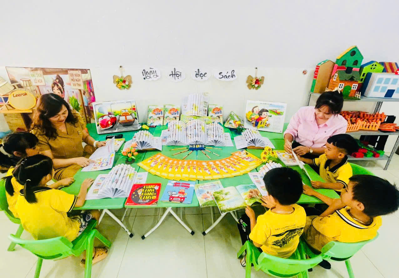 Những góc thư viện xinh xắn, những giờ kể chuyện đầy cảm xúc, những cuốn truyện tranh rực rỡ sắc màu… đã và đang trở thành người bạn thân thiết nuôi dưỡng tâm hồn trẻ mỗi ngày. Ở lứa tuổi mầm non, đọc sách không chỉ là “đọc chữ” mà còn là hành trình cảm nhận – nơi trẻ được lắng nghe, được tưởng tượng, được yêu thương và học cách yêu thương. Mỗi câu chuyện là một bài học nhẹ nhàng, mỗi trang sách là một bước đệm giúp con tự tin khám phá thế giới.