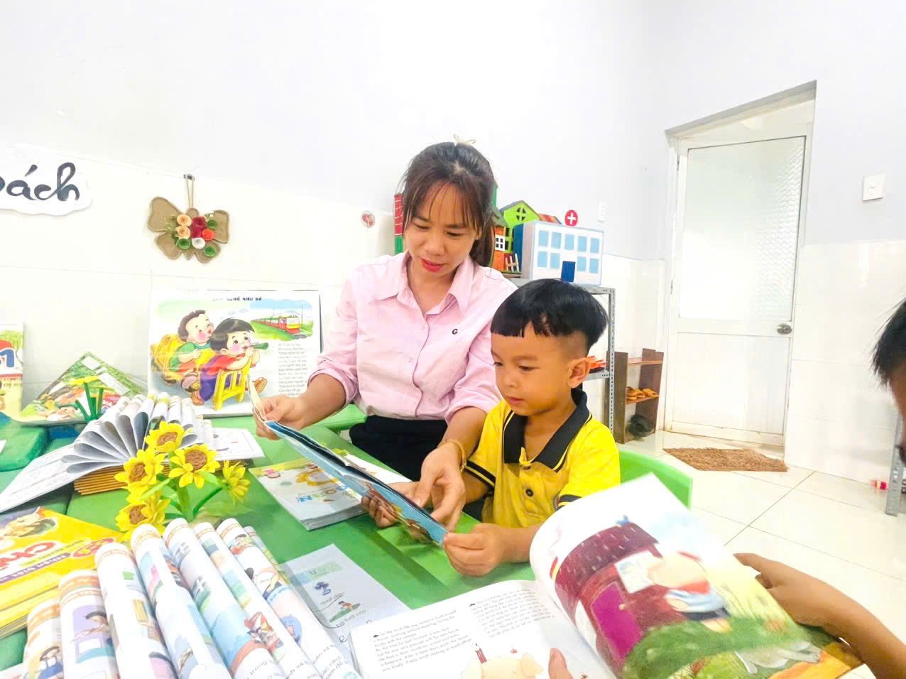 Có những hạt giống không cần đất để nảy mầm – đó là những trang sách. Và tại Trường Mầm non Hoa Ban, mỗi cuốn sách nhỏ lại chính là một thế giới lớn mở ra trong đôi mắt trong veo của trẻ thơ.