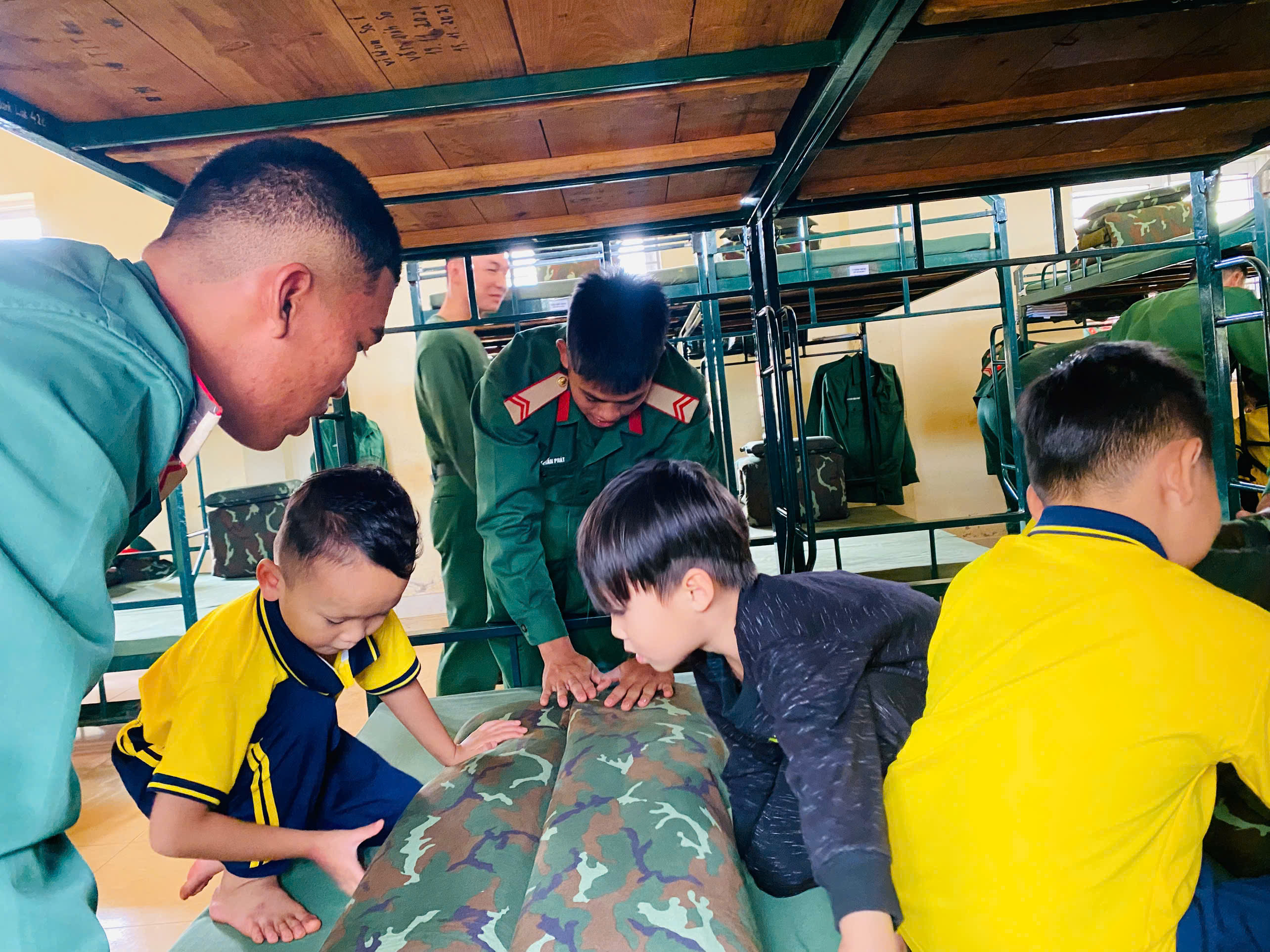 Trong không khí vui tươi chào mừng kỉ niệm ngày thành lập Quân Đội Nhân dân Việt Nam ngày 22/12 các bé Trường Mầm non Hoa Ban đã có chuyến tham quan, trải nghiệm đầy ý nghĩa tại doanh trại bộ đội. Những ánh mắt háo hức, nụ cười rạng rỡ khi được gặp gỡ, trò chuyện và tìm hiểu cuộc sống của các chú bộ đội đã để lại nhiều cảm xúc đẹp. Qua hoạt động trải nghiệm “Cháu yêu chú bộ đội”, các bé thêm hiểu, thêm yêu hình ảnh người lính Bộ đội Cụ Hồ, từ đó bồi dưỡng lòng biết ơn, tình yêu quê hương và niềm tự hào dân tộc ngay từ những năm tháng đầu đời.