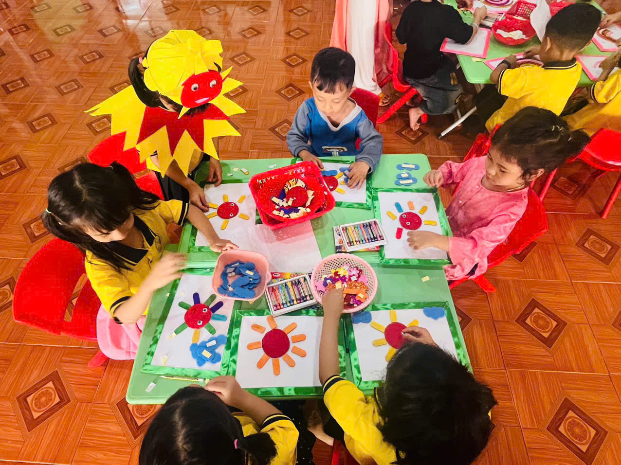 Sinh hoạt chuyên môn thông qua dự giờ – lên tiết là hoạt động được duy trì thường xuyên, góp phần tạo nên môi trường học tập, chia sẻ kinh nghiệm sôi nổi trong đội ngũ giáo viên. Mỗi tiết dạy không chỉ thể hiện sự chuẩn bị công phu, sáng tạo mà còn là dịp để giáo viên vận dụng linh hoạt phương pháp “lấy trẻ làm trung tâm”, giúp trẻ hứng thú, chủ động khám phá và phát triển toàn diện.