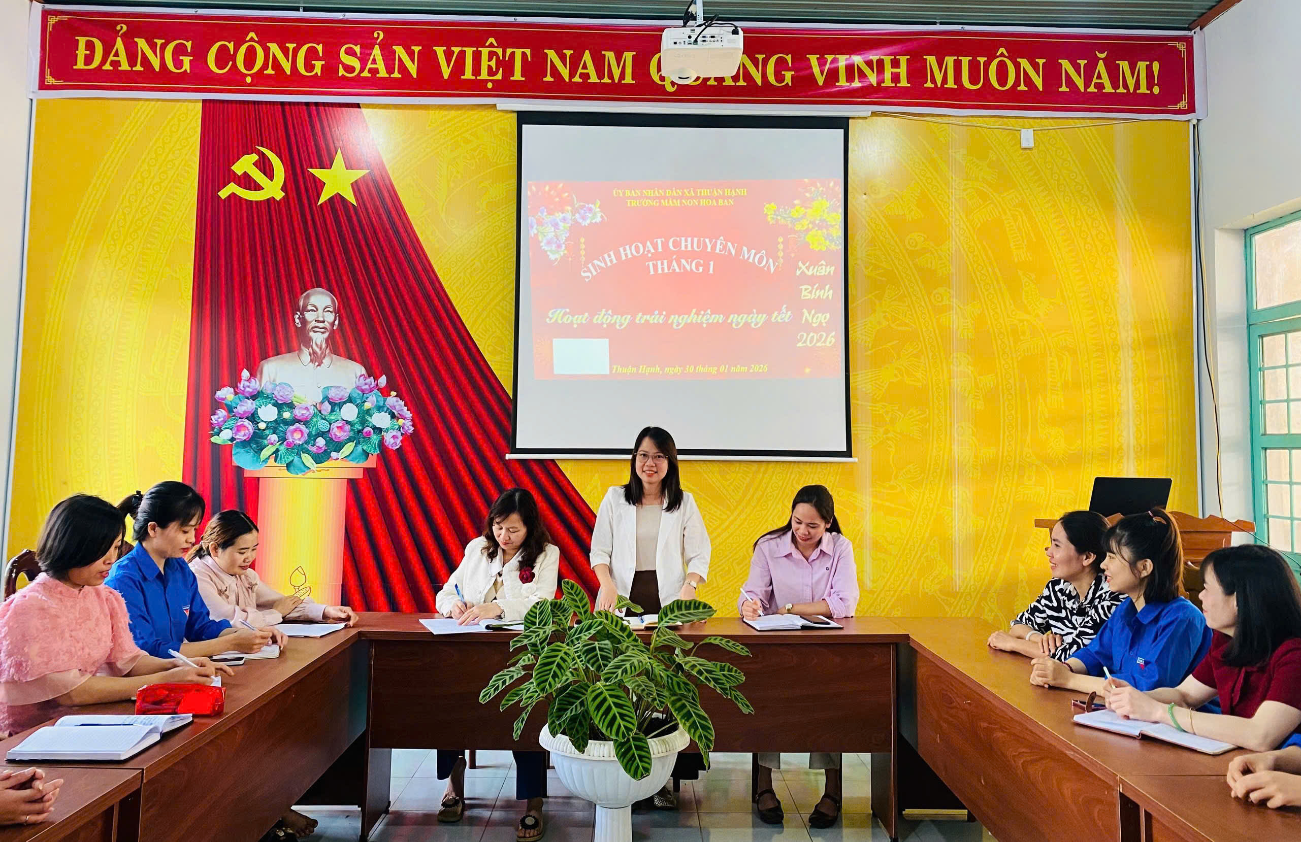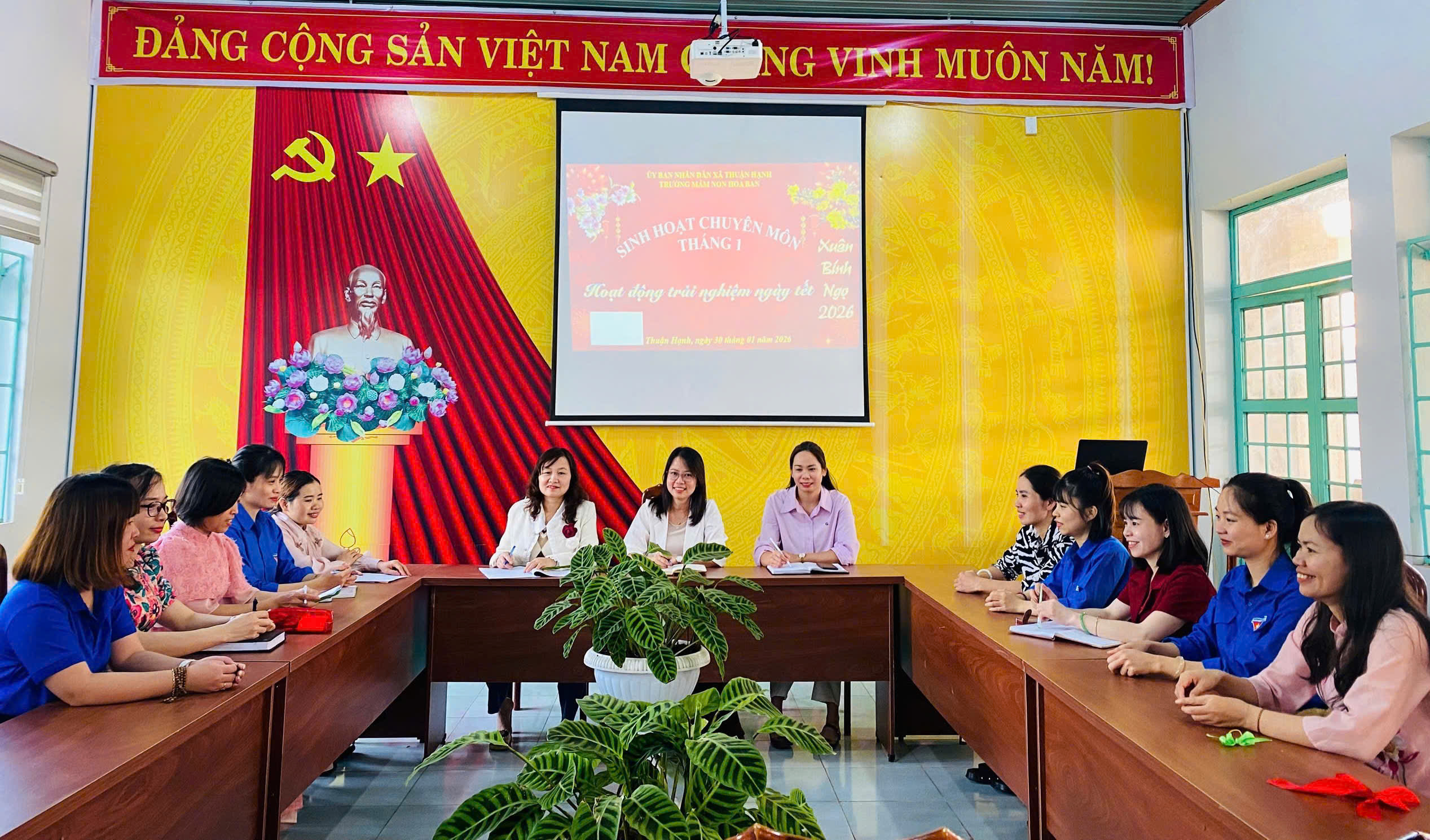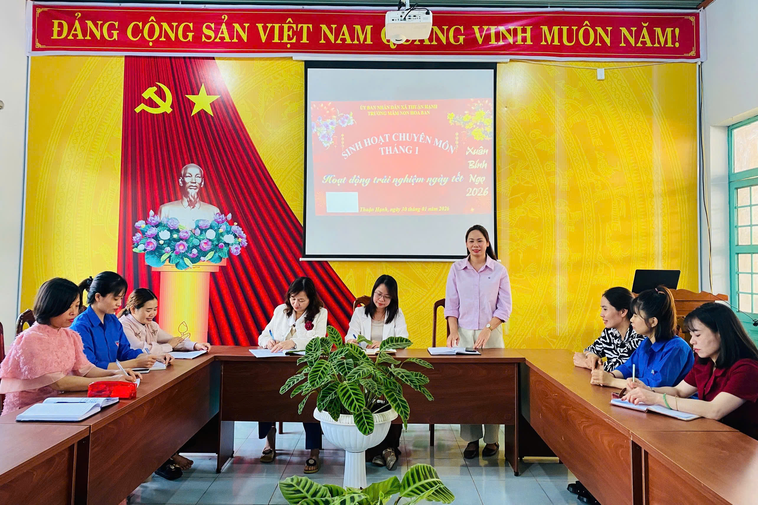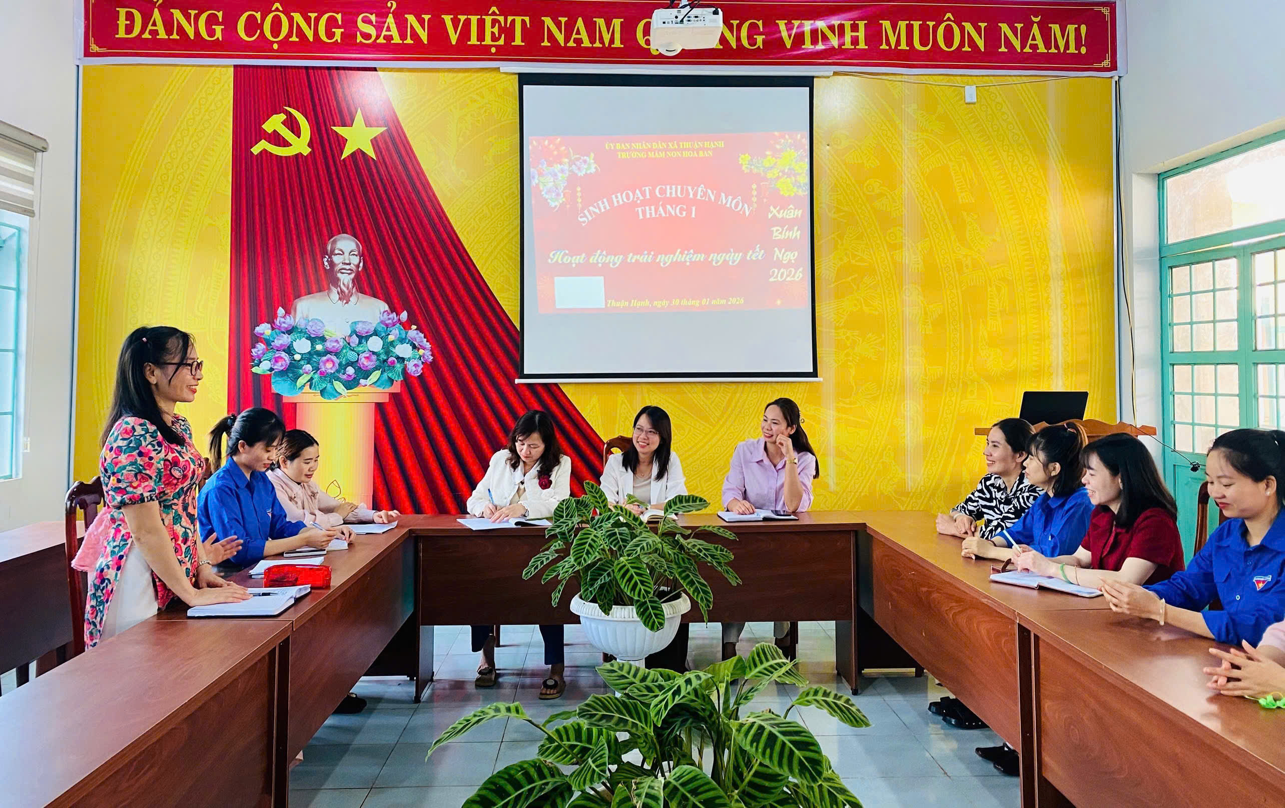 Sáng nay ngày 30-1/2026. Trường Mầm non Hoa Ban tổ chức buổi sinh hoạt chuyên môn với chủ đề Hoạt động trải nghiệm ngày Tết. Buổi sinh hoạt là dịp để giáo viên trao đổi, chia sẻ kinh nghiệm tổ chức các hoạt động trải nghiệm phù hợp, giúp trẻ hiểu thêm về ngày Tết cổ truyền, phát triển kỹ năng và nuôi dưỡng tình yêu văn hóa dân tộc.