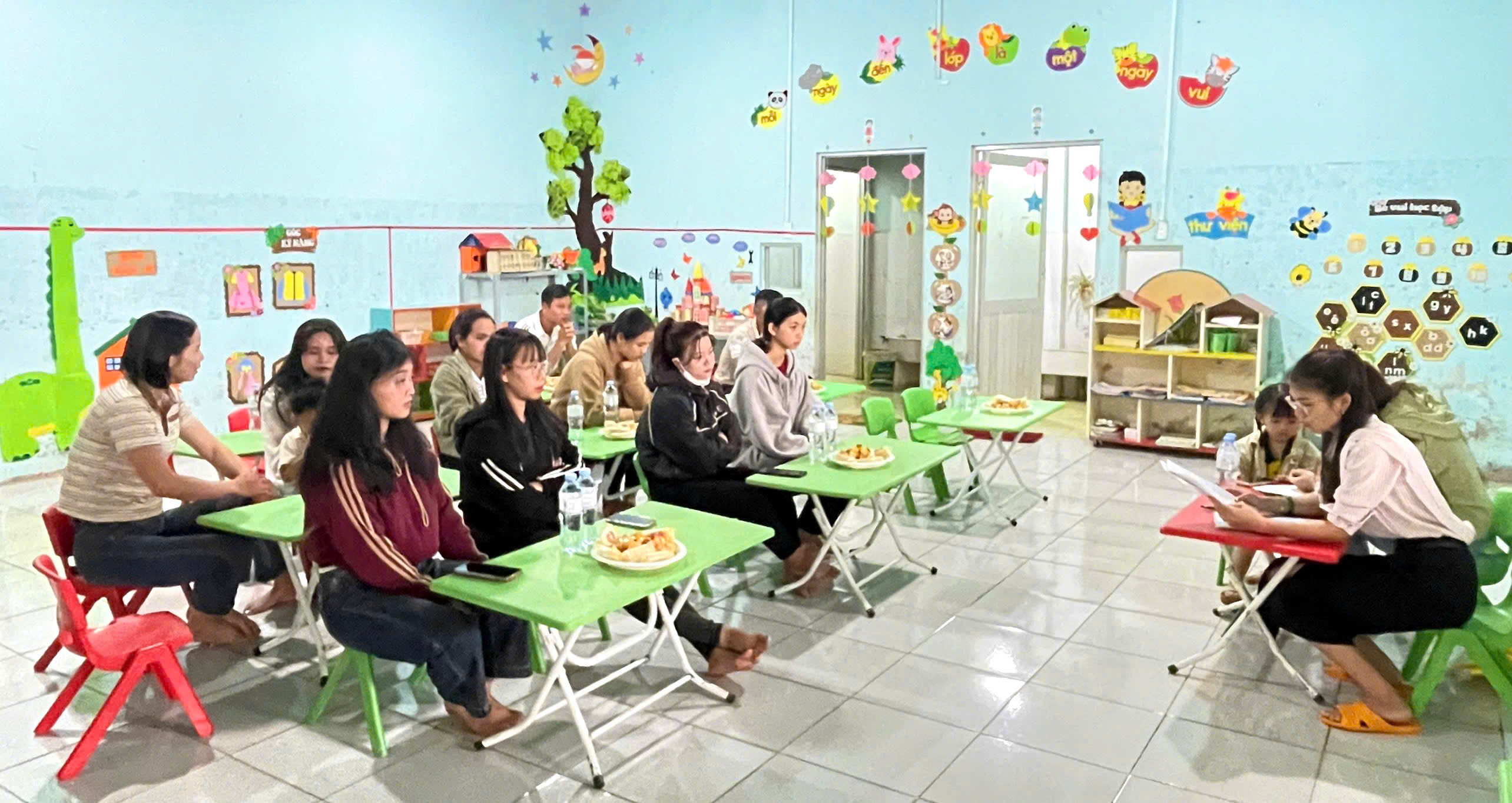 Tham dự buổi họp có toàn thể giáo viên các lớp cùng đông đảo phụ huynh học sinh. Tại buổi họp, các giáo viên chủ nhiệm đã trao đổi cụ thể về tình hình lớp, nề nếp học sinh, cơ sở vật chất, và thống nhất các nội quy phối hợp giữa gia đình và nhà trường trong công tác chăm sóc – giáo dục trẻ.